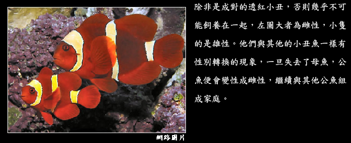 來,這時別的小丑魚都已經建立信心與搶到地盤,透紅小丑便會收斂許多了。